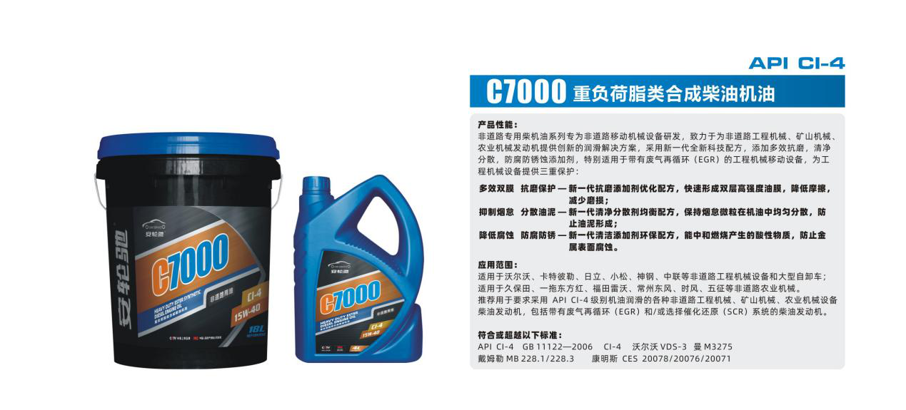 推薦用于要求采用API CI-4 級別機油潤滑的各種非道路工程機械、礦山機械、農(nóng)業(yè)機械設(shè)備柴油發(fā)動機,