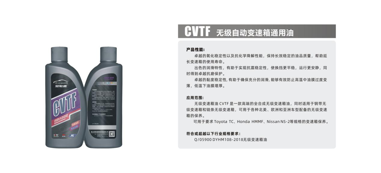 無級變速箱油CVTF是一款高端的全合成無級變速箱油,同時適用于鋼帶無級變速箱和鏈條無級變速箱,可用于各種北美、歐洲和亞洲車型配備的無級變速箱的保養(yǎng)。